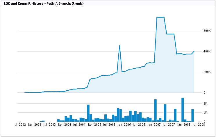 Delta lines of code (DLOC) allows you to monitor repository activity in terms of the number of lines of code added and removed in a selected period of time, and by selected committers. More...